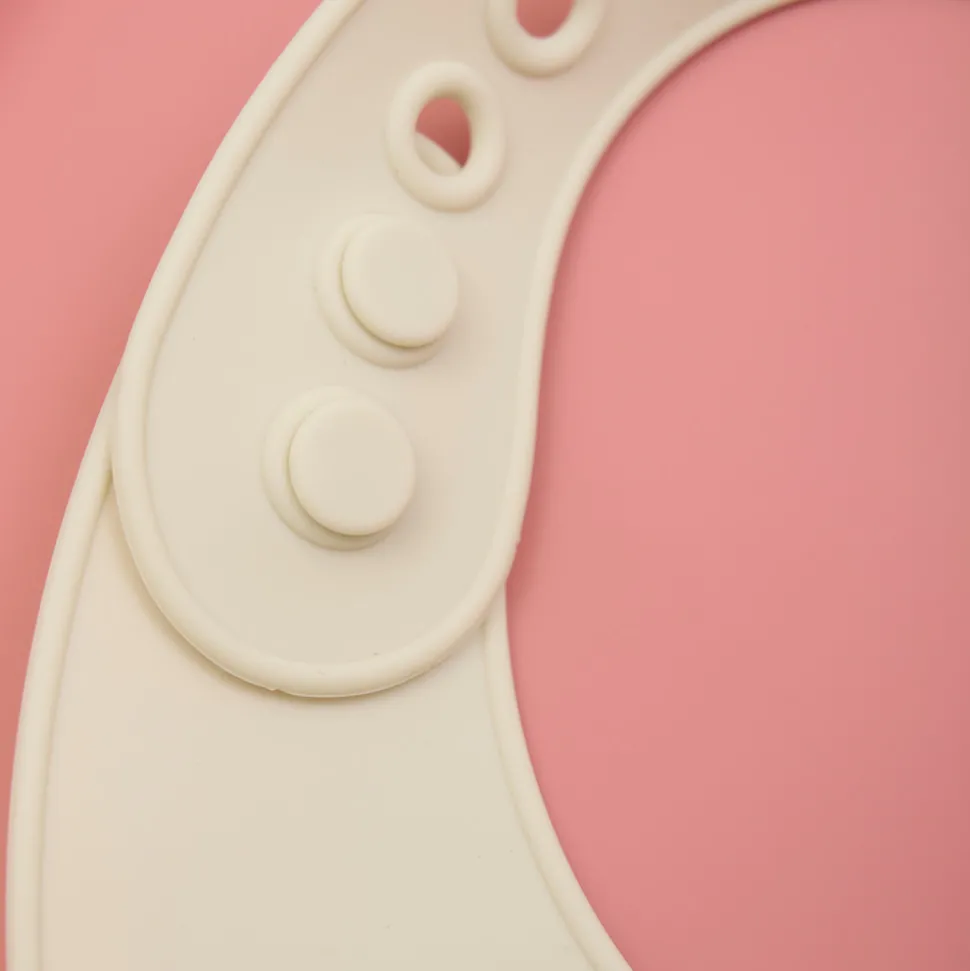 Spisesmæk i silikone. Praktisk hagesmæk der er blød og nem at bruge til baby og børn. Med praktisk opsamler der gør spisetiden nemmere.
