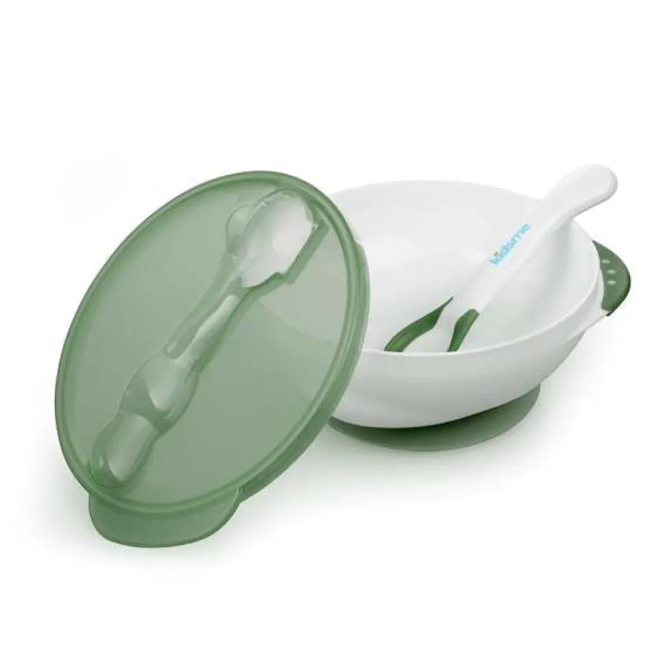 Dette sæt gør spisning let, både for forældre og børn uanset om I er hjemme eller ude. På undersiden af tallerkenen er der en sugekop, som gør at dit barn ikke ved et uheld kommer til at skubbe tallerkenen på gulvet. Udover tallerkenen er der også en temperaturske i dette sæt. Den virker ved at farven på skeen skifter når madens temperatur er over 40 grader. Derved sikrer du let, at dit barn ikke brænder sig. Skeen er designet, så den passer perfekt i den lille hånd. Skeen kan let placeres i det medfølgende låg og en klap klikkes på, så skeen ikke bliver beskidt under transport.