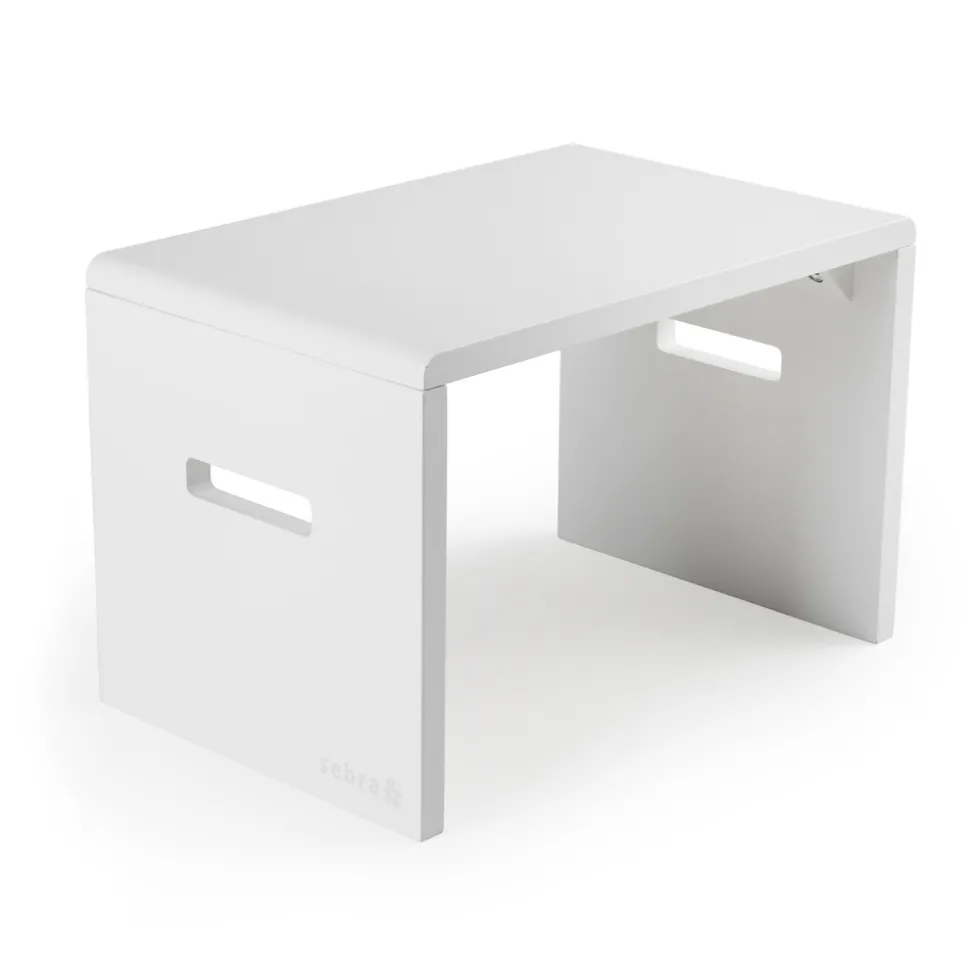 Sebra Skammel er en praktisk og stilfuld skammel designet til at gøre det nemt for børn at komme op i Sebra Sengen, Baby & Jr., når tremmesiderne er taget af.