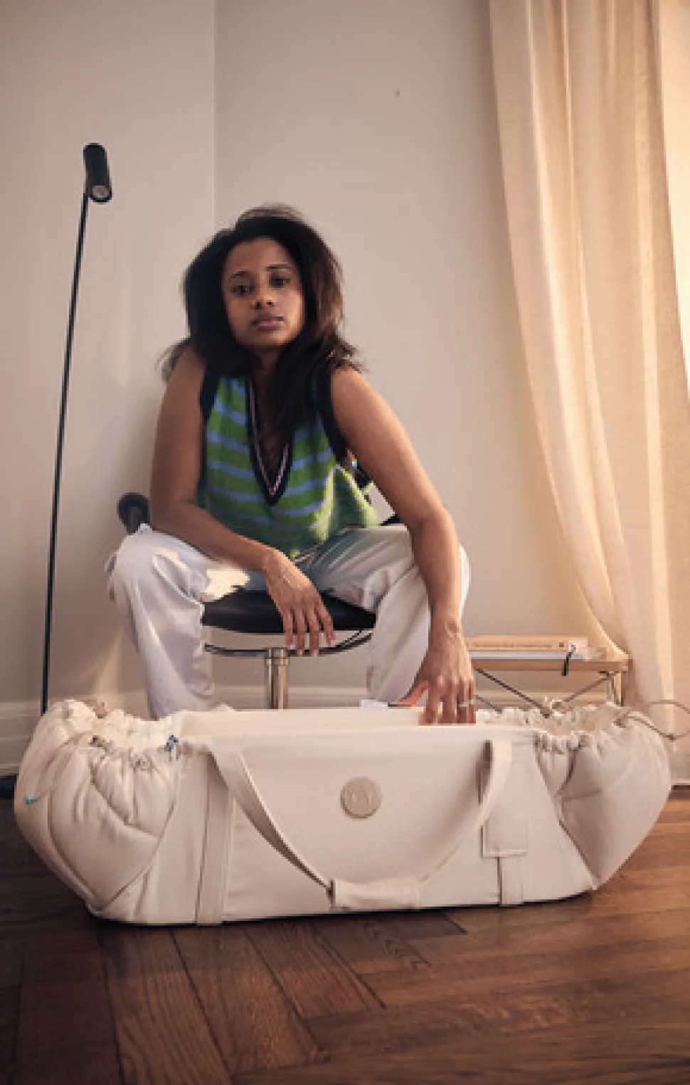 Via håndtagene kan du nemt flytte din sovende baby fra vuggen til barnevognen og tage den med på alle dine eventyr uden at forstyrre middagsluren. Ved at justere snorene kan du nemt ændre størrelsen. Du kan åbne den helt eller delvist. Når den er helt flad, forvandles den til et blødt legetæppe, så du og din baby kan øve jer i at ligge på maven sammen.