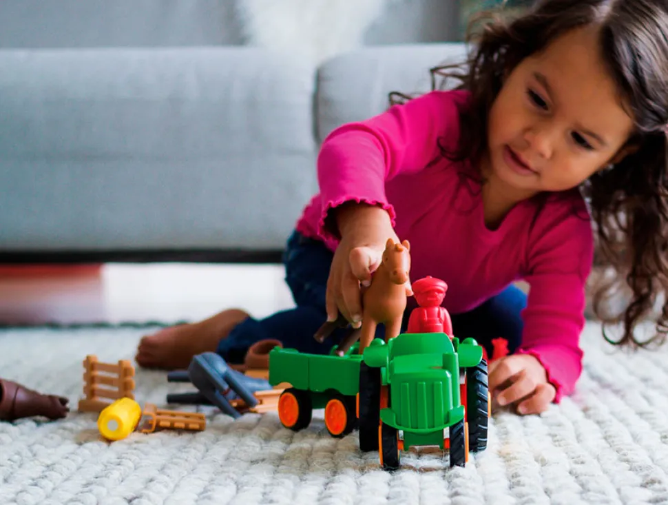 Små børn kan sikkert opdage magnetismens magi med SmartMax “My First” kollektionen. De ekstra store traktor- og dyredele klikker nemt fast på de magnetiske stave.