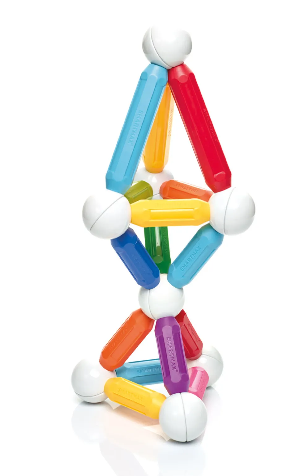 Med SmartMax kan børn bygge figurer og udforske magneternes magiske kræfter. De overdimensionerede stykker er specielt designet og godkendt til børn. Magneterne er stærke nok til at bære op til 60 gange deres egen vægt! Startsættet indeholder 23 dele og en guide til at bygge forskellige modeller. Forlængersæt fås separat.