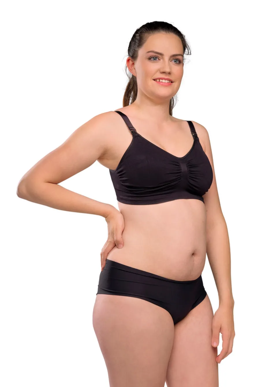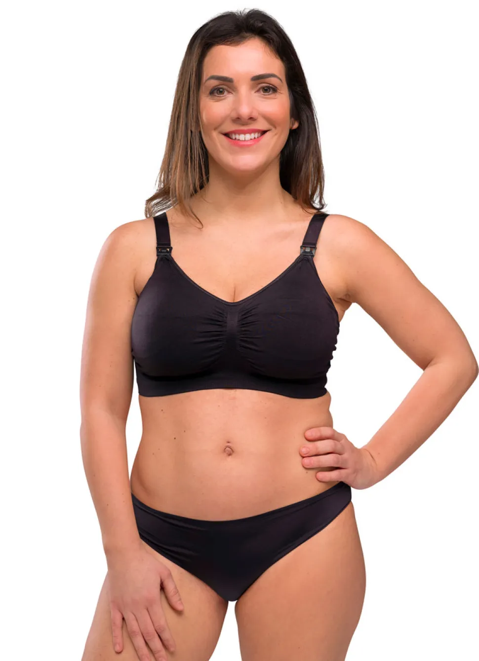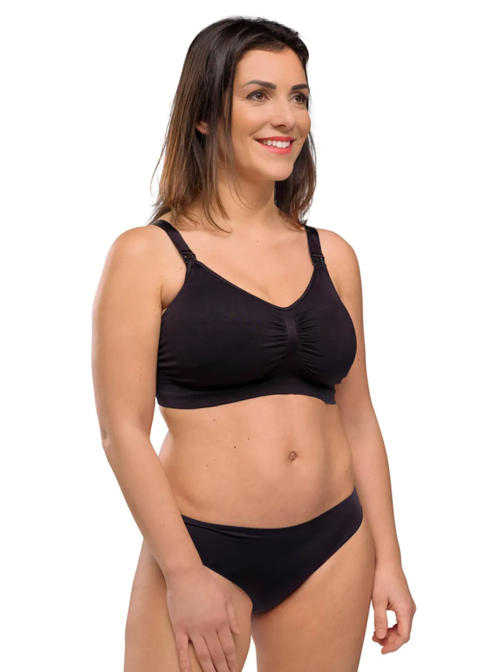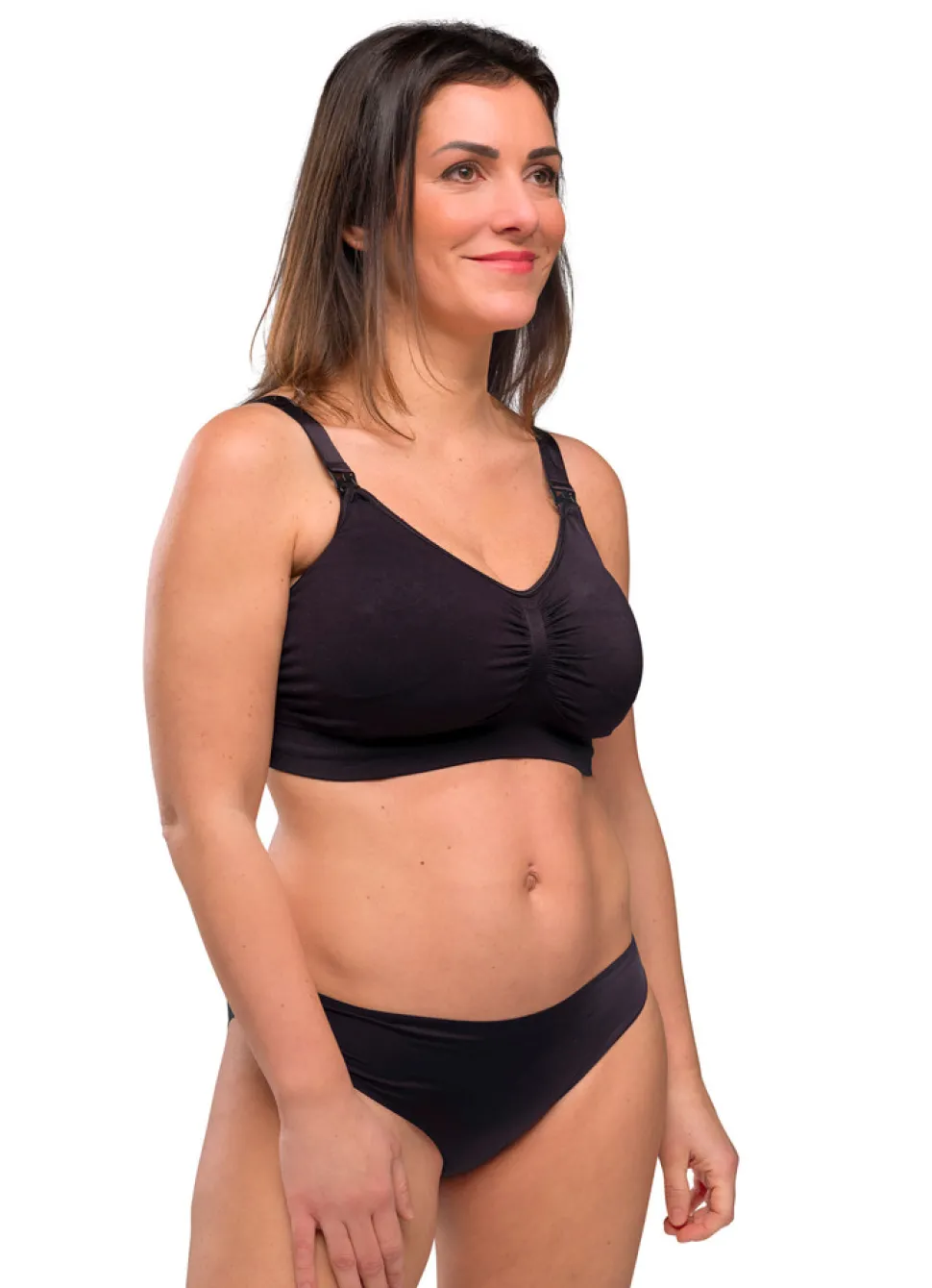 Carriwells Sømløse Amme BH er en blød og behagelig BH, som følger din krop i takt med den forandre sig. Den enkle ammelukning blotter hele brystet når du ammer. Du opnår derved maksimal hud-til-hud kontakt mellem dig og din baby.