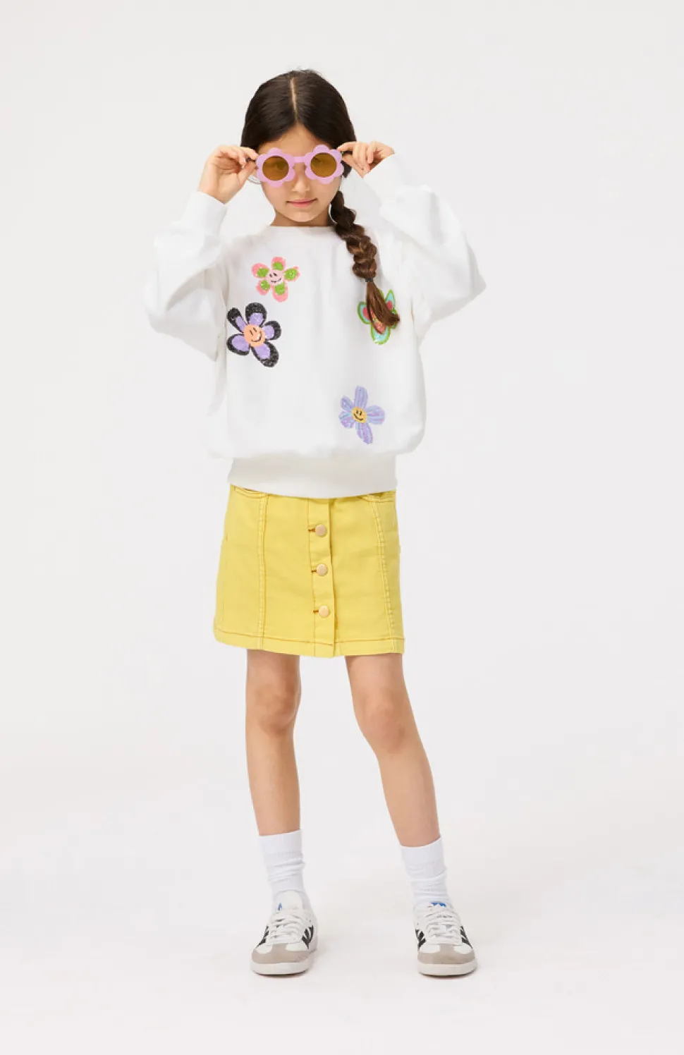 Blomsterformede solbriller i lyserød og grøn med tonede glas og en satineret overflade, der giver 100% UV-beskyttelse. Velegnet til børn og unge i alderen 7 til 16 år.