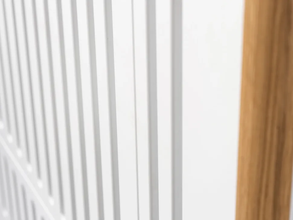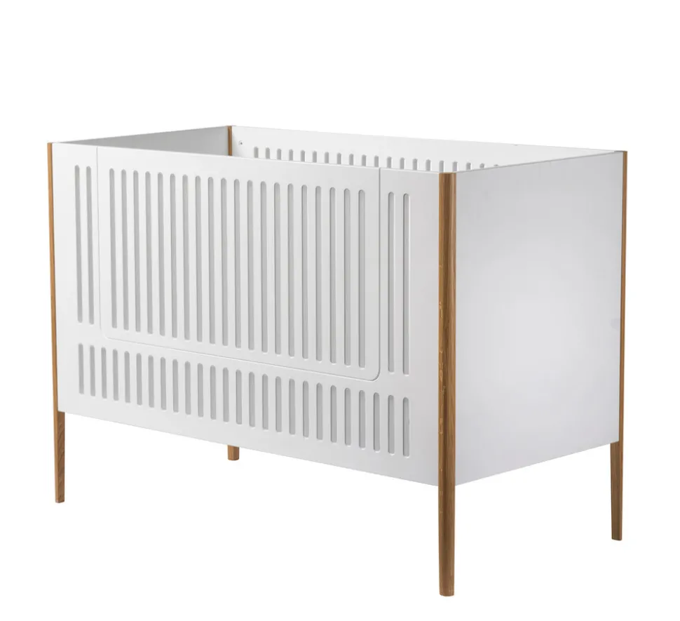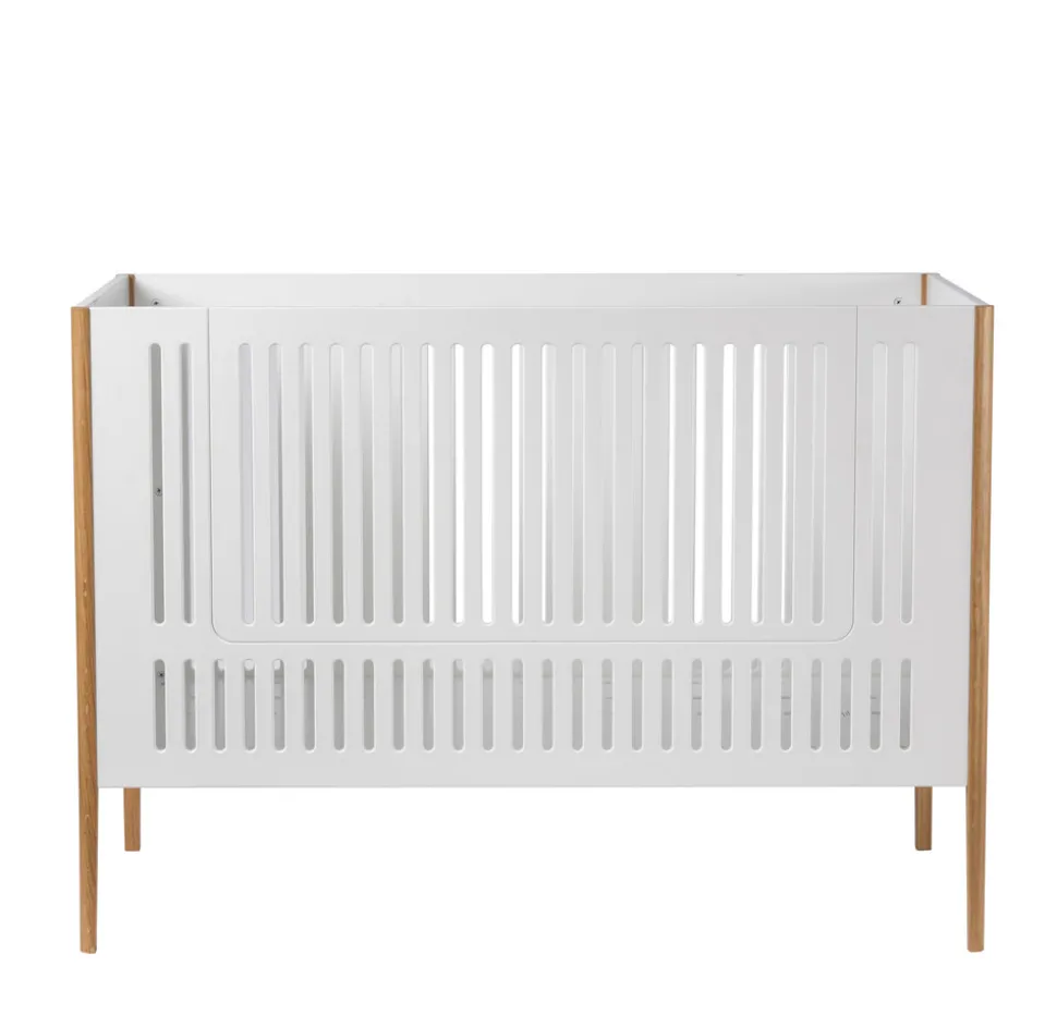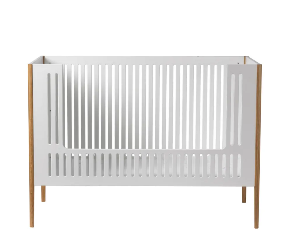 Spoke er resultatet af et samarbejde med det danske designstudio Says Who, skabt med ambitionen om at gøre godt design tilgængeligt for alle. Tremmesengen forener æstetik og funktionalitet i et let og tidløst udtryk, hvor de markante ben i massivt egetræ skaber en smuk kontrast til den moderne hvide finish.