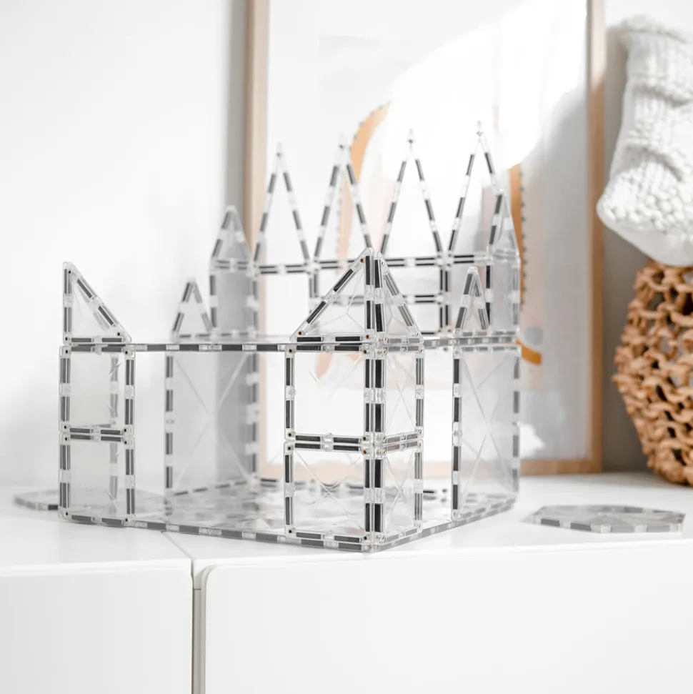 Træd ind i en verden af uendelige muligheder med Connetix Starter Pack – et magnetsæt med 34 gennemsigtige dele. Sættet indeholder magnetiske brikker i forskellige former, inklusive store sekskanter. Slip din kreativitet løs og byg Frozen-slotte, snefnug, igloer, vinduer eller drivhuse. Børn kan udforske magnetisme, former, lys og tyngdekraft, mens de udvikler deres finmotoriske og problemløsningsfærdigheder.
