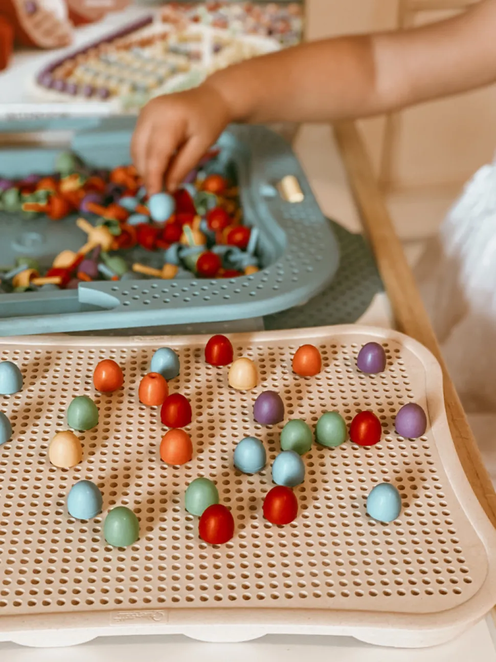 Størrelsen på stiftene er perfekt til at træne finmotorikken og hånd-øje-koordinationen, samt koncentrationsevne. Det perfekte legetøj til kreativ fordybelse!