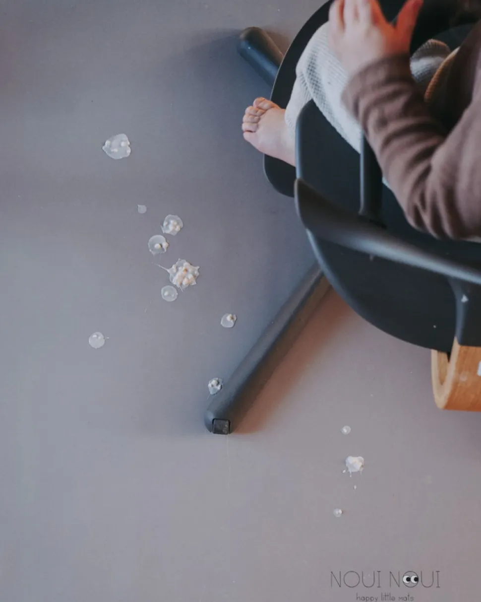 Praktisk stoleunderlag til under højstolen. Underlaget beskytter trægulve, fliser og tæpper mod madrester og pletter.