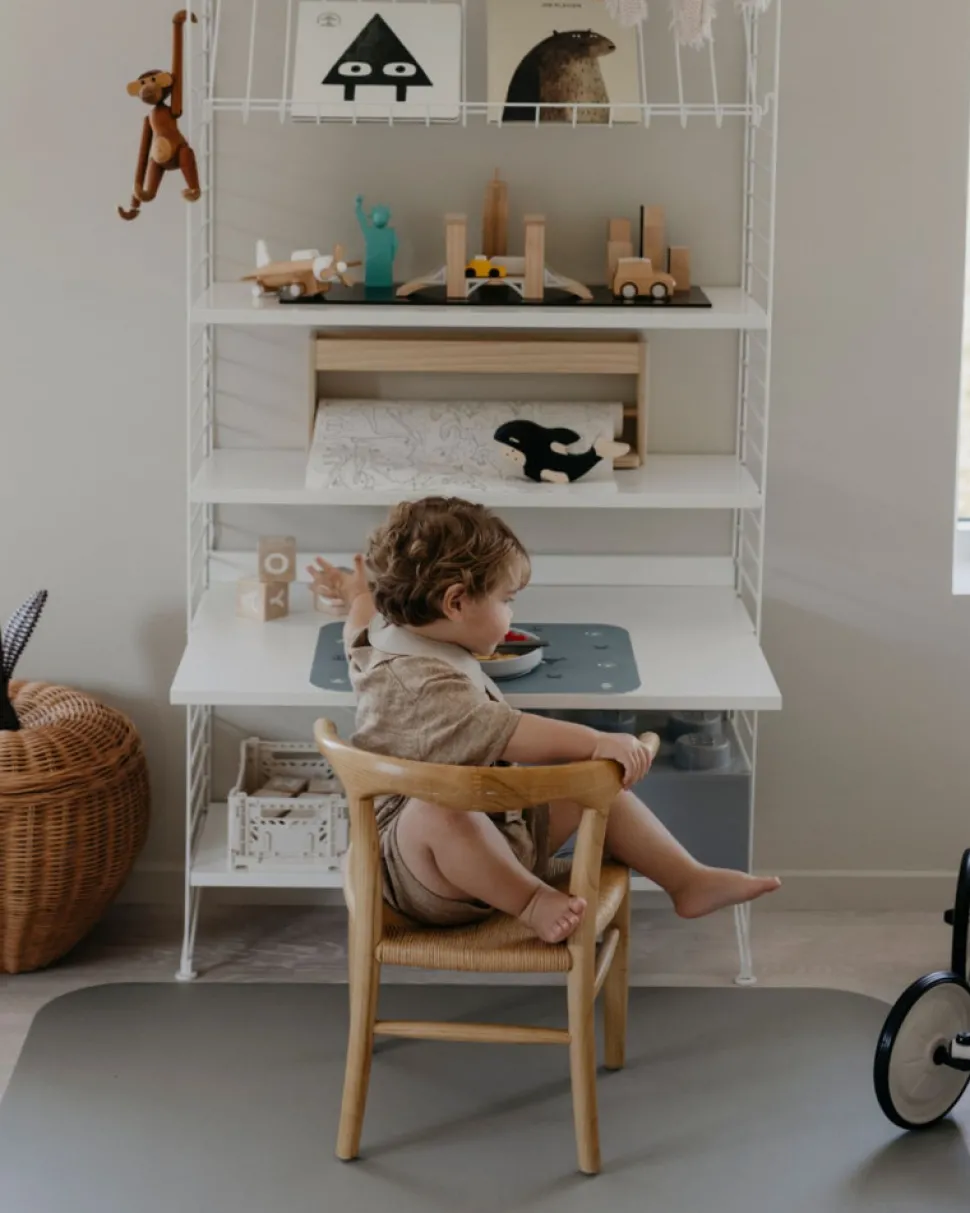 Praktisk stoleunderlag til under højstolen. Underlaget beskytter trægulve, fliser og tæpper mod madrester og pletter.