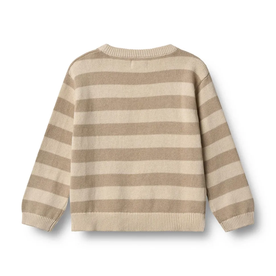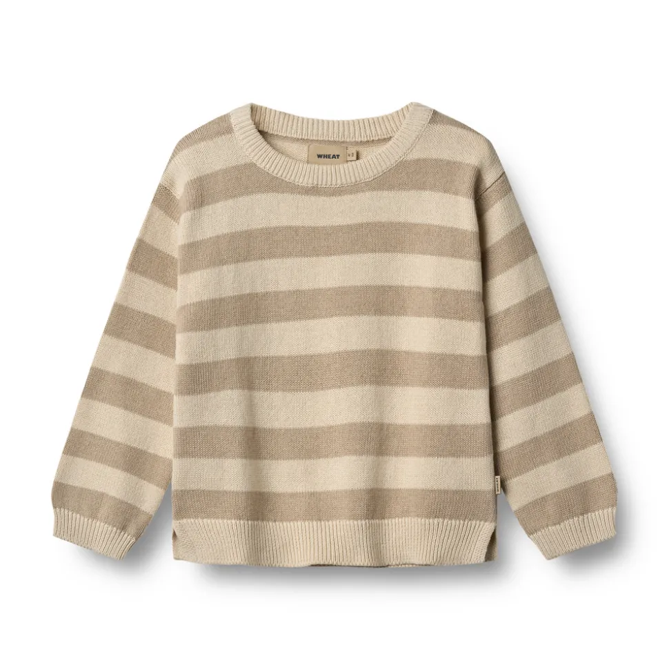 Wheat’s strik er en tro følgesvend, da det er blødt og behageligt for dit barn at have tæt på huden uden nogen former for kløe. Wheat strik har et klassisk look med en afslappet pasform, der gør det nemt at style med et par bukser eller over en kjole alt efter vejr og anledning.