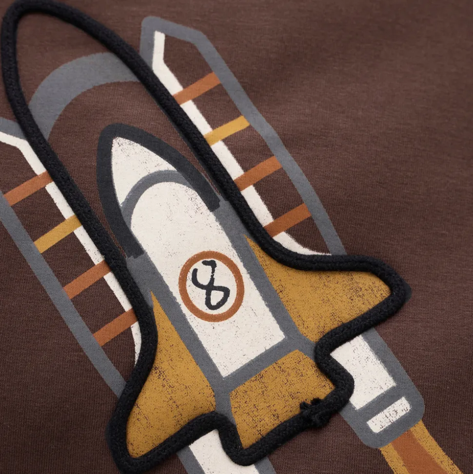 Sweatshirt med et sejt rumskibsmotiv på forsiden og ribkanter ved hals, ærmer og bund, der sikrer en god pasform. Perfekt til små eventyrere med stjerner i øjnene.