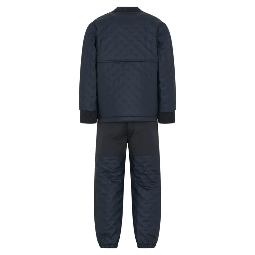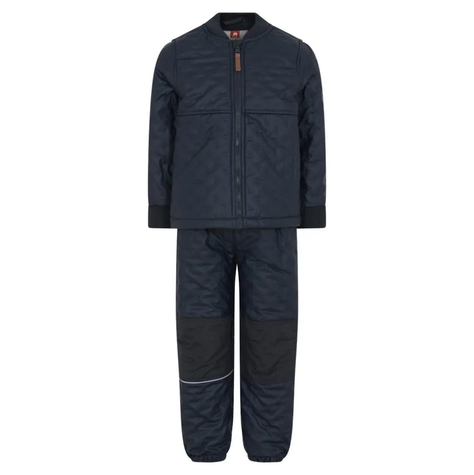 Termotøj med PU-belægning, som gør termotøjet vandtæt. Derudover er sættet foret indvendigt. Ekstra forstærket på knæ og bagpå på bukserne. Bukserne har desuden elastik i talje og ved ankler. Jakken har ribkant ved hals og håndled samt lynlåslukning. CeLaVi-logo foran.