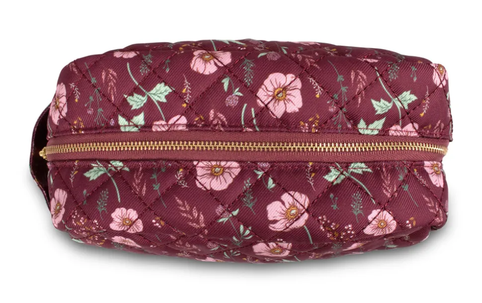 Praktisk toilettaske i genanvendt RPET-polyester, som er slidstærkt og nemt at tørre af. Toilettasken er i farven Fall Flowers, som ikke alene er flot, men også praktisk. Indeni har tasken en tone-i-tone linning og en lille sidelomme, så det er nemt at organisere make-up eller andre småting. Toilettasken har en fin guldfarvet YKK lynlås, som er det førende mærke inden for kvalitets lynlåse.