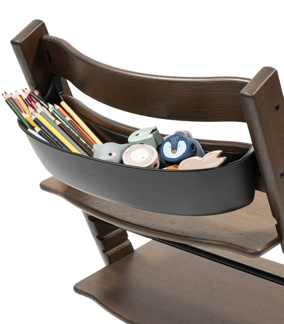 Tripp Trapp® Storage produceres eksklusivt til den ikoniske Tripp Trapp® højstol, og er perfekt til steder, hvor pladsen er trang. Den er designet, så den let og enkelt kan fastgøres på højstolen. Den har plads til alle de ting, du har brug for til måltidet, og holder styr på hagesmække og legetøj, så de er lette at finde. Senere, i takt med at barnet bliver større, kan I opbevare spil og tegnegrej i yndlingsstolen, klar til brug, når familien samles omkring bordet. Det betyder, at Tripp Trapp® Storage kan bruges i hele Tripp Trapp®-stolens levetid, fra nyfødt til voksenalderen. Tripp Trapp® Storage er let at fjerne fra stolen og placeres på gulvet eller bordet, hvor børnene leger og hygger sig.