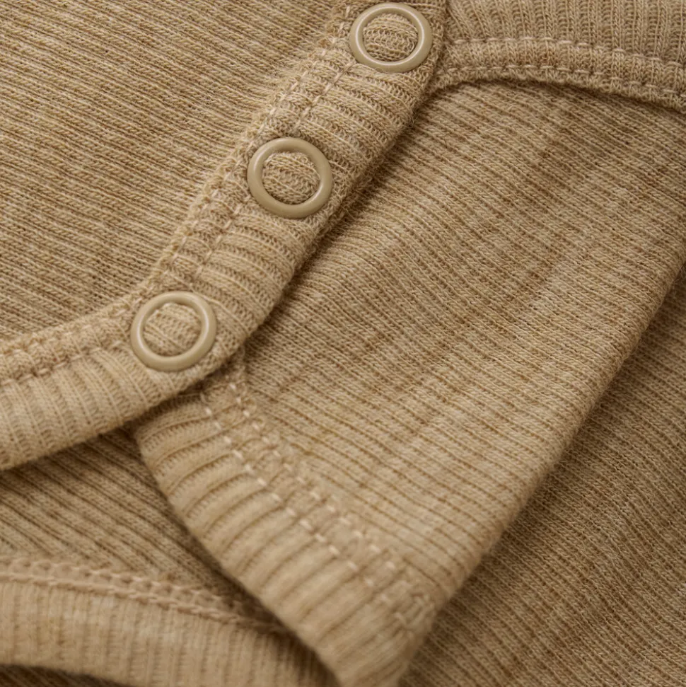 Bekids Uldbody Solid – blød og varm ærmeløs body til de mindste! Denne skønne ærmeløse body fra Bekids er lavet i 100 % ribstrikket uld, som føles blød og behagelig mod huden. Den ribbede struktur gør bodyen elastisk og fleksibel, så dit barn kan bevæge sig frit og komfortabelt.