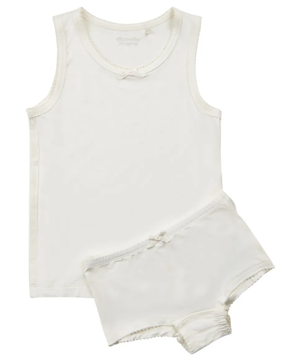 Undertøjssæt fra Minymo er et ideelt valg til børn, der ønsker komfort hele dagen. Sættet består af en undertrøje og et par underbukser, som begge er fremstillet i blødt og åndbart materiale, der føles rart mod huden. Det elastiske design sikrer, at undertøjet sidder godt uden at stramme, og giver barnet frihed til at bevæge sig. Sættet egner sig både til daglig brug under tøjet og som behageligt nattøj. Med sit enkle og tidløse look passer det til alle garderober, og det er nemt at holde rent, da det tåler maskinvask. Minymo er kendt for deres fokus på kvalitet og komfort, hvilket gør dette undertøjssæt til et sikkert valg for både børn og forældre.