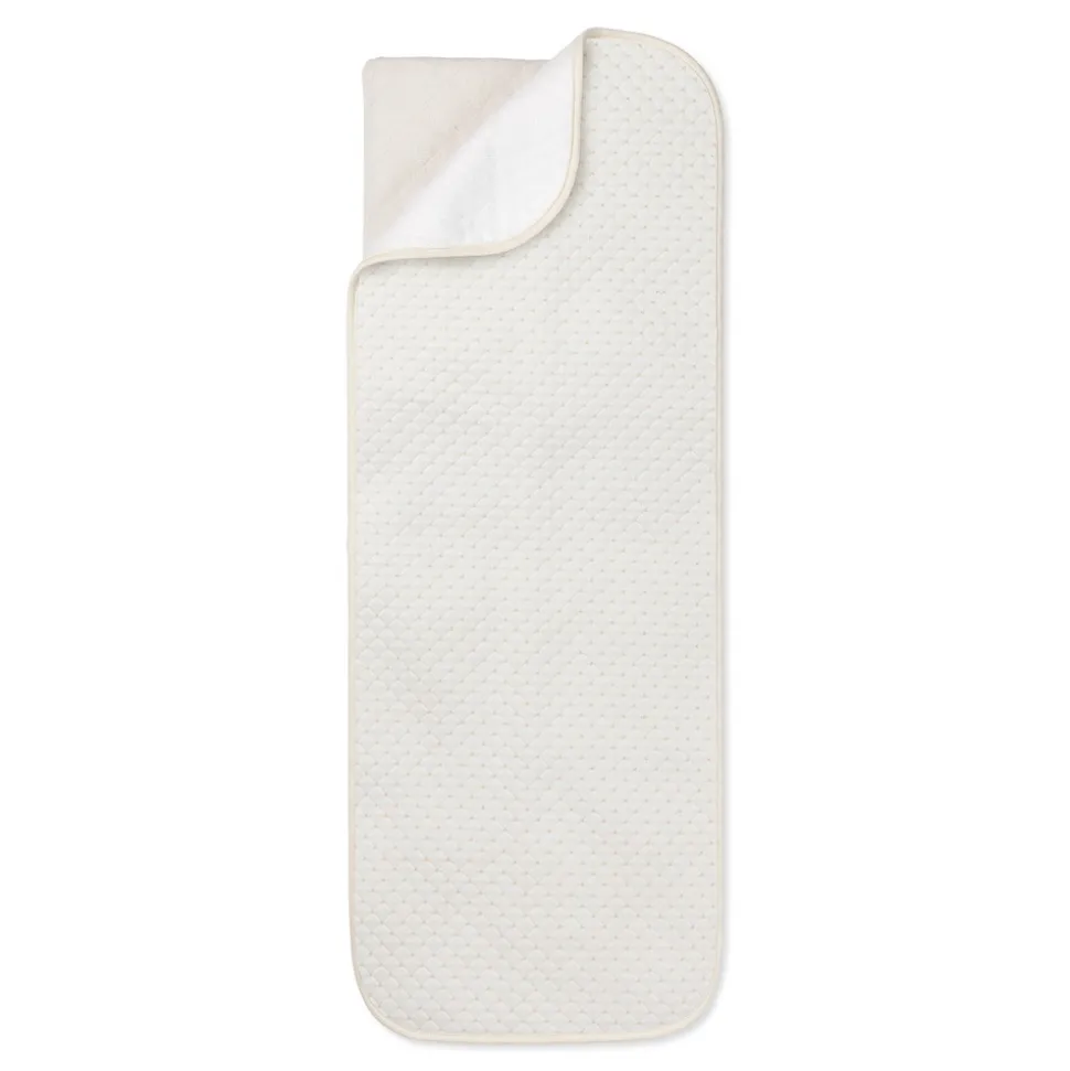 Moonboon madrasbeskytteren, der måler 32 cm x 90 cm, har en blød overflade i quiltet bomuld, der giver maksimal komfort. Madrasbeskytteren kan absorbere op til 1,5 liter væske. Funktionalitet i hospitalskvalitet møder babydesign. Madrasbeskytteren er med til at forlænge din madras’ levetid. Bagsiden i frotté holder madrasbeskytteren sikkert på plads. Med en kvalitetsmadrasbeskytter, der passer perfekt til Moonboon slyngevugge madras, kan du være sikker på, at dit barn sover i et rent, behageligt og og hygiejnisk miljø.