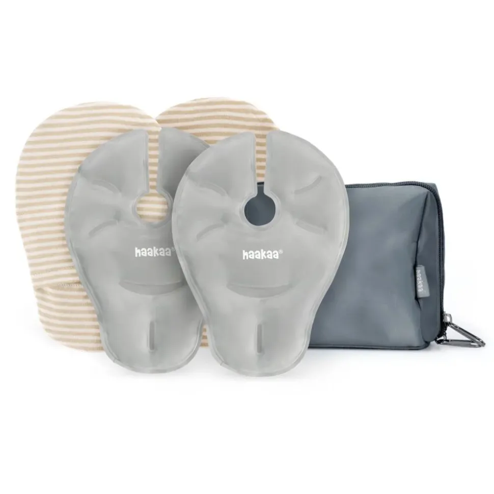 Haakaas varme- og kølepuder lindrer ømhed og ubehag forbundet med amning. Varm dem op for at hjælpe med at lindre ubehag ved brystbetændelse eller for at forbedre tilløb af mælken. Alternativt kan du prøve at køle dem i køleskab eller fryser for at hjælpe med at lindre betændte eller hævede bryster og brystvorter. Hver pude kommer med et blødt bomuldscover, der giver et beskyttende lag mellem puderne og din hud, samt en praktisk opbevaringstaske. Velegnet til bryster i alle former og størrelser.
