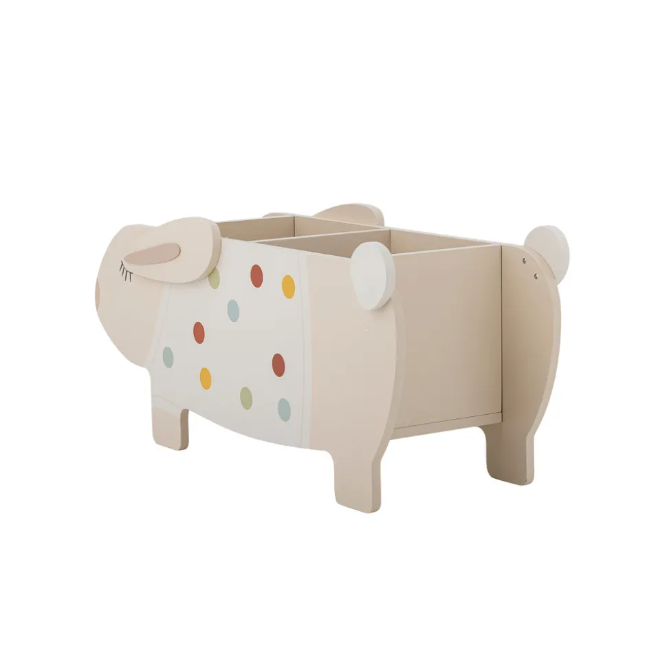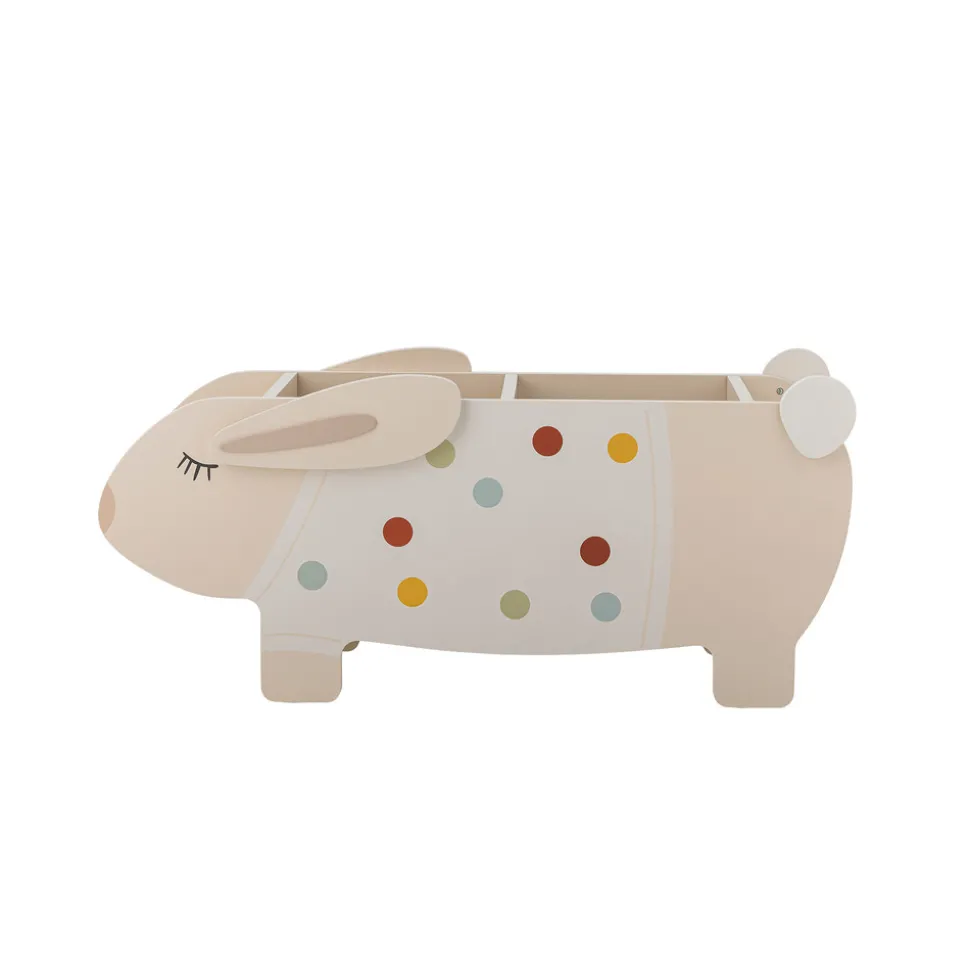 Villja Bogreolen fra Bloomingville MINI forestiller en sød kanin iført en prikket trøje. Den er lavet i MDF og har praktiske rum og hylder, der gør den oplagt til opbevaring af bøger og legetøj på børneværelset.