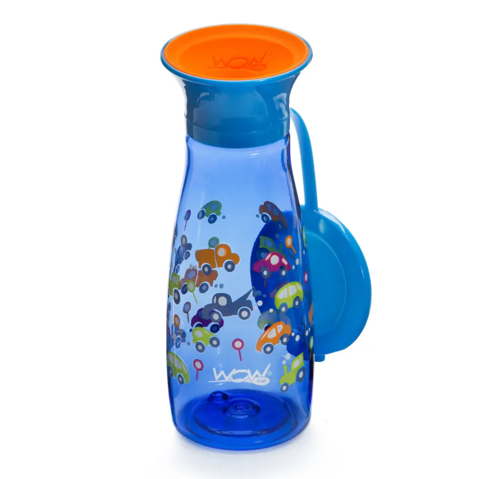 Slip for spild af drikkevarer ved spisebordet, i sofaen, i bilen, i sengen og mange andre steder. Samtidig er koppen også super praktisk på skovturen, skituren og på stranden. Koppen forhindrer insekter i at komme i berøring med drikkevarerne. Koppen består af 4 dele, som er let at adskille og samle, og alle dele kan naturligvis rengøres i opvaskemaskine. Koppen har en 360° drikkekant, der er forseglet med en blød silicone ventil, som åbnes ved overlæbens berøring, samtidig med at man suger ganske let. WOW Cup er beregnet til kolde og forfriskende drikke og indeholder op til 350 ml. WOW Cup er for børn i fra 6 måneder, og er naturligvis 100% fri for BPA og Phthalater. Der følger låg med, som giver øget beskyttelse når koppen ligger i taske eller lign. Str: 18 X 7 cm.