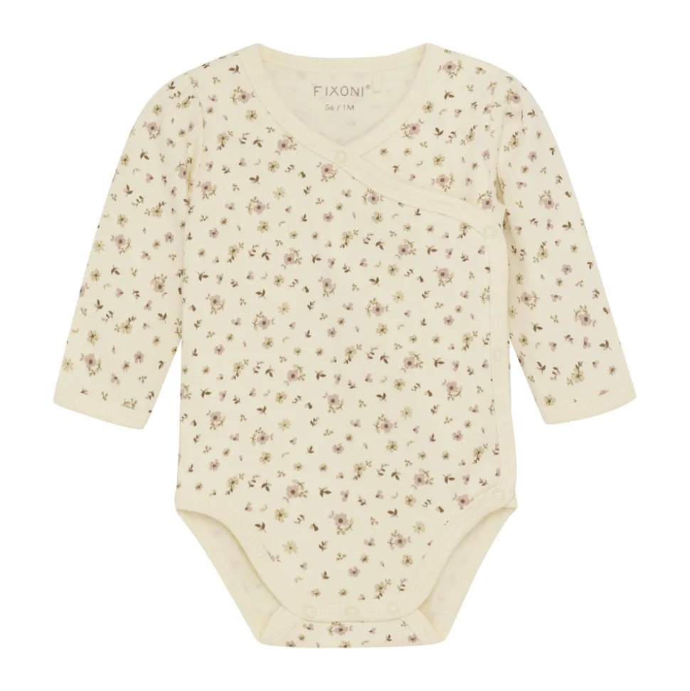 Langærmet wrap body med all-over print. Nem at tage af og på. Perfekt til babyer.